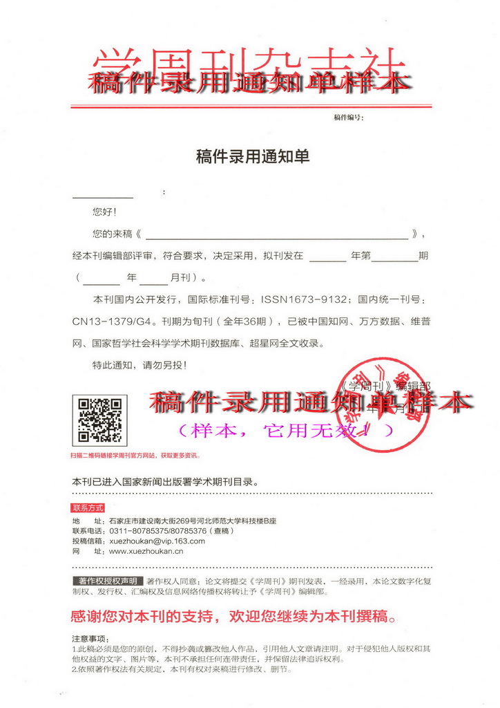 下图为新版“稿件录用通知单”样本: